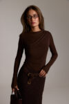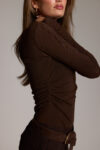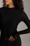 בגד גוף מבד רזיל במראה כיווצים ושרוול כפפה
