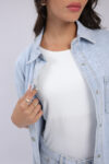 גופיית בייסיק צמודה מבד לייקרה מבריק.
