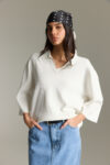חולצת סריג עם צווארון ושרוולי 3/4