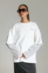 חולצת אוברסייז שרוול על שרוול בשילוב פסים
