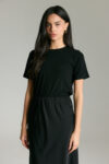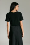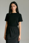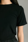 חולצת בייסיק צמודה, צווארון עגול ושרוולים קצרים.