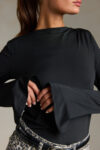 חולצה מבד לייקרה עם מפתח סירה, שרווליo מתרחבים עם שסע