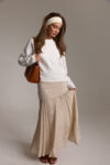חצאית מידי מבד פשתן בשילוב בד סריג בתוספת ביטנה