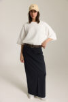 חצאית מקסי אלגנטית, טקסטורת פסים ושסע מלפנים
