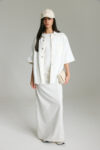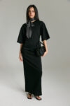 שמלת מקסי, שרוול 3/4. בשילוב כיווצים במותן ושסע אחורי.