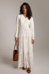 שימלת שיפון שכבות בטקסטורת פרחים עם כפתורי דמה,